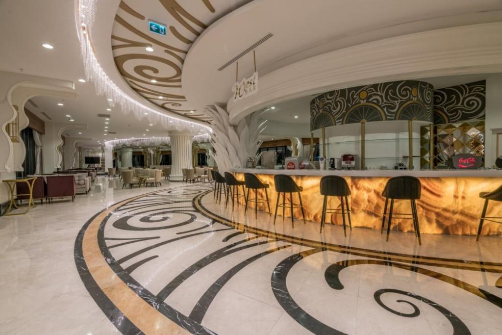 Adalya Elite Lara با معماری مدرن و شکوه خاص خود از همان لحظه ورود شما را شگفتزده میکند. نمای بیرونی هتل ترکیبی از خطوط شیک و طراحی معاصر است و در داخل، لابی بزرگ و نورپردازی شده حس ورود به یک کاخ مدرن را منتقل میکند. استفاده از رنگهای طلایی و سفید در طراحی داخلی، فضای هتل را لوکستر کرده است. مبلمان مدرن، سقفهای بلند و جزئیات چشمنواز در گوشه و کنار هتل باعث میشود مهمانان احساس کنند وارد دنیایی متفاوت از آرامش و زیبایی شدهاند.