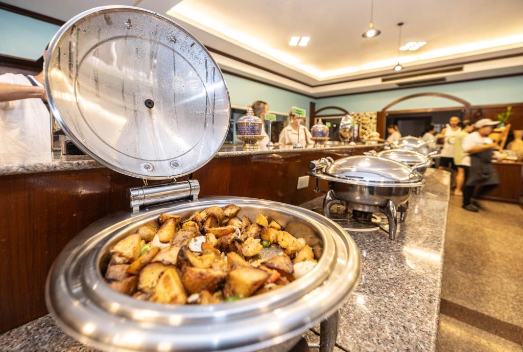 ناهار و شام منویی ترکیبی دارند: غذاهای غربی مانند پاستا، پیتزا و استیک در کنار انواع غذاهای تایلندی با طعمهای اصیل (ترش، شیرین، تند و معطر). کیفیت غذاها در مقایسه با بسیاری از هتلهای همرده بسیار خوب ارزیابی میشود.