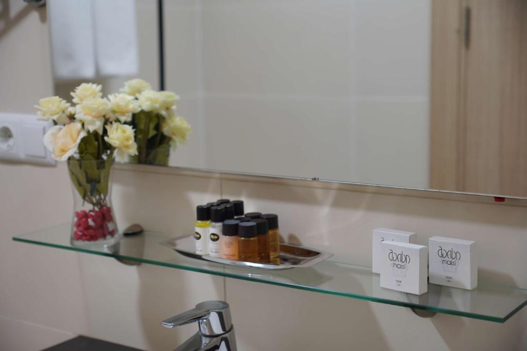 سرویس بهداشتی مدرن با دوش بارانی و لوازم آرایشی بهداشتی لوکس