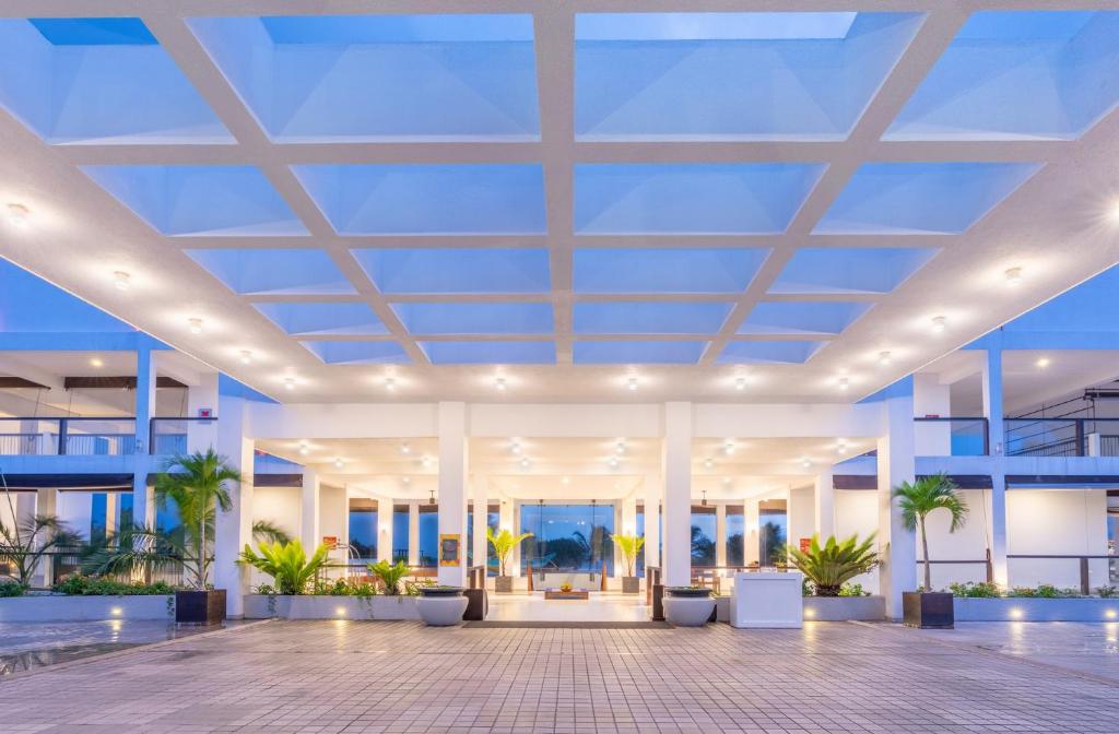 فضای داخلی لابی هتل بزرگ، روشن و چشمگیر است. کفهای سنگی براق، مبلمان راحت با رنگهای گرم و پنجرههای سرتاسری که نور طبیعی و چشمانداز دریا را به داخل میآورند، ورود به هتل را به تجربهای دلپذیر تبدیل میکنند.