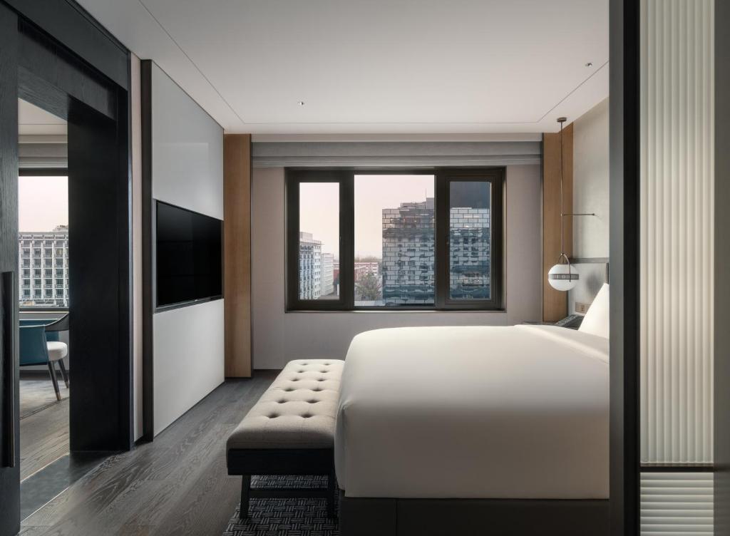 تختها بزرگ، با تشکهای باکیفیت و ملحفههای سفید و لطیف هستند. کنار پنجره، مبل راحتی و میز کار چیده شده تا مهمان بتواند هم منظره خیابانهای پکن را تماشا کند و هم در صورت نیاز به کار، فضای مناسبی داشته باشد. در اتاقها تلویزیون صفحه تخت، چایساز، مینیبار، گاوصندوق، سیستم تهویه مطبوع مجزا و اینترنت بیسیم پرسرعت وجود دارد.