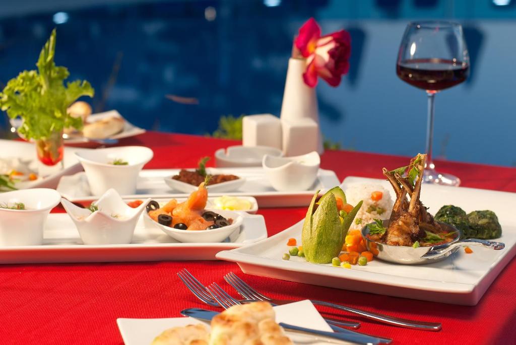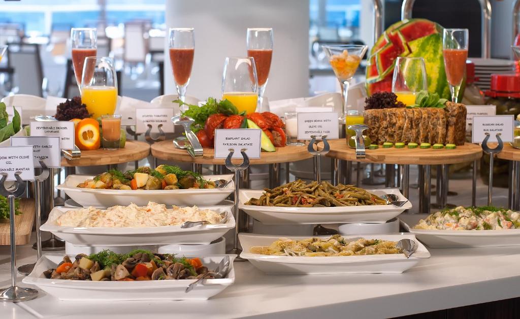 رستوران اصلی: صبحانه، ناهار و شام بهصورت بوفه ارائه میشود؛ از غذاهای سنتی ترکی گرفته تا انواع غذاهای بینالمللی.