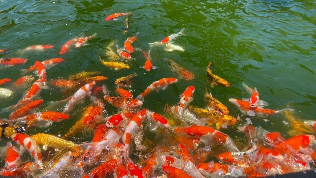 محوطهی سرسبز شامل باغهای استوایی، مسیرهای پیادهروی و استخرهای روباز متعدد.