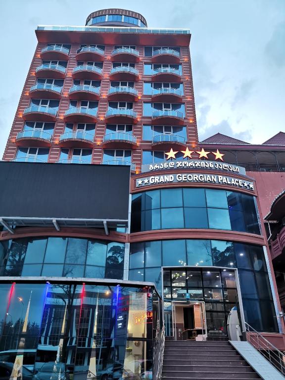 هتل گرند پالاس در یکی از مناطق نسبتاً مرکزی باتومی واقع شده و دسترسی خوبی به مکانهای مهم شهری دارد. این هتل از ساحل دریای سیاه تنها چند دقیقه فاصله دارد و پیادهروی تا بلوار ساحلی و دیگر جاذبههای مهم شهر از جمله میدان اروپا، برج الفبا و تلهکابین آرگو بهراحتی امکانپذیر است.