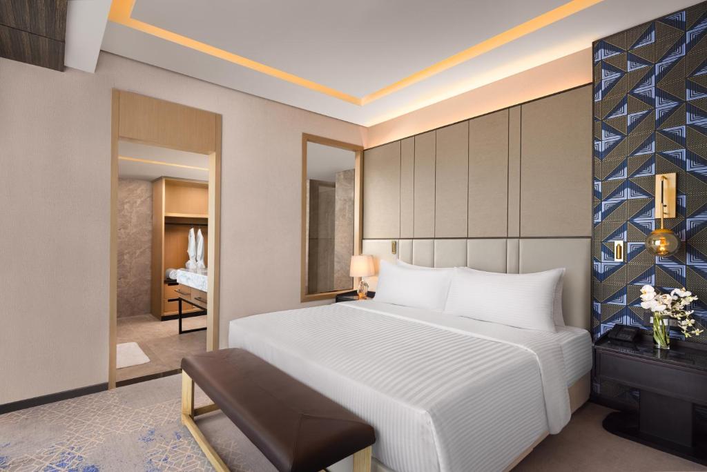 لابی وسیع با سقفهای بلند، مبلمان مدرن، آثار هنری معاصر و نورپردازی طبیعی از پنجرههای قدی، اولین تصویری است که ذهن مهمانان را تسخیر میکند. این طراحی مدرن اما گرم، تجربهای متفاوت از ورود به یک هتل پنجستاره را به نمایش میگذارد.