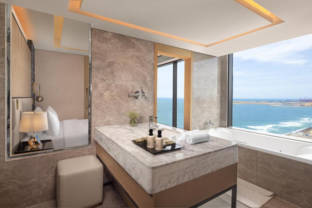 چشمانداز اقیانوس و شهر: بسیاری از اتاقها دارای بالکن یا پنجرههای بزرگ با چشماندازی بینظیر هستند.