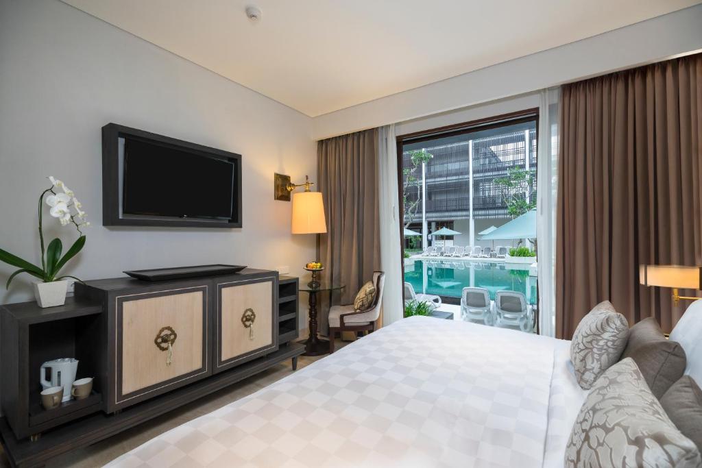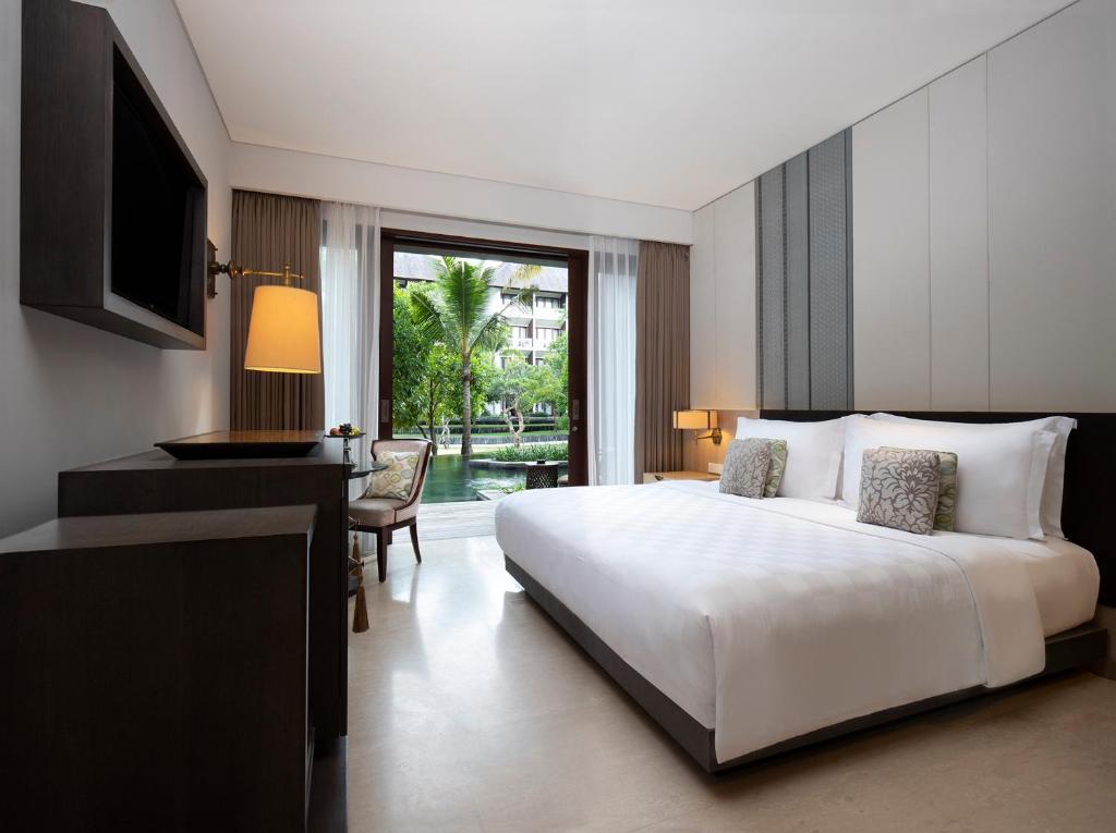 این هتل دارای ۴۹۳ اتاق و سوئیت لاکچری است که با دکوراسیونی زیبا، مبلمان مدرن و امکانات کامل طراحی شدهاند. سبک معماری اتاقها تلفیقی از طراحی سنتی بالیایی با عناصر مدرن است که فضایی شیک و آرامشبخش ایجاد میکند.