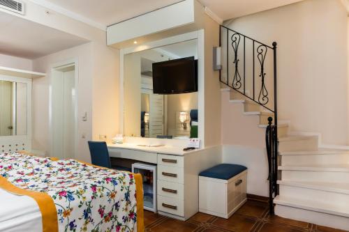 هتل اورنج کانتی کمر دارای ۵۱۴ واحد اقامتی شامل انواع اتاقهای استاندارد، خانوادگی، و سوئیتهای لوکس است. برخی از این اتاقها چشمانداز دریا، استخر یا کوههای توروس را دارند.