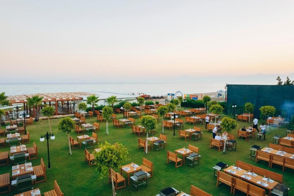 یکی از ویژگیهای برجسته این هتل، ساحل اختصاصی با شنهای نرم و دریای شفاف مدیترانه است که تختهای آفتابگیری و بار ساحلی را نیز شامل میشود.