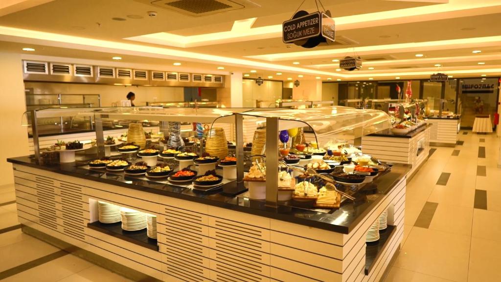 رستوران اصلی، یک سالن بزرگ با بوفهای چشمگیر است؛ جایی که صبحانه، ناهار و شام، به یک جشن رنگ و طعم تبدیل میشوند. از پنیرهای محلی و نانهای داغ ترکی گرفته، تا غذاهای بینالمللی با چیدمان هنری، هیچ سلیقهای بیپاسخ نمیماند.