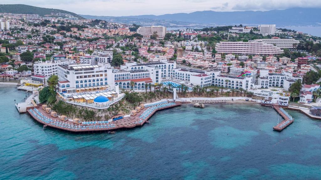 این هتل در بهترین نقطه ساحلی کوشآداسی جا خوش کرده است؛ جایی که دریا مثل آیینهای آبی زیر پایت گسترده شده، و آفتاب از دل ابرهای نازک طلوع میکند، گویی تنها برای تو. از بالکن اتاقت، درختان نخل را میبینی که با نسیم بازی میکنند، و صدای موجها درست همان لالایی است که باید هر شب شنید.