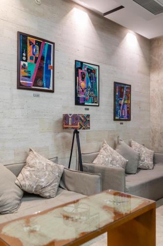 لابی شیک با مبلمان مدرن و نورپردازی ملایم