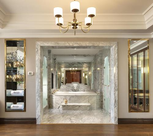 حمامهای لوکس با سنگ مرمر، دوش آبشار و وانهای عمیق