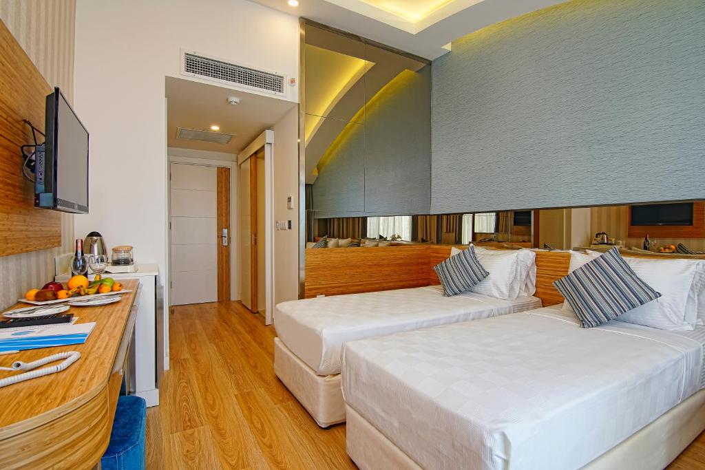 اتاقها بهطور کامل مجهز به امکانات مدرن هستند که از جمله آنها میتوان به تلویزیون صفحهتخت، تهویه مطبوع، مینیبار، سشوار، صندوق امانات و سرویس بهداشتی مدرن اشاره کرد. سوئیتها و اتاقهای بزرگتر برای خانوادهها و گروههای مسافرتی مناسبتر هستند و دارای فضاهای وسیعتر و امکانات لوکستری همچون وان جکوزی و اتاق نشیمن جداگانه هستند.