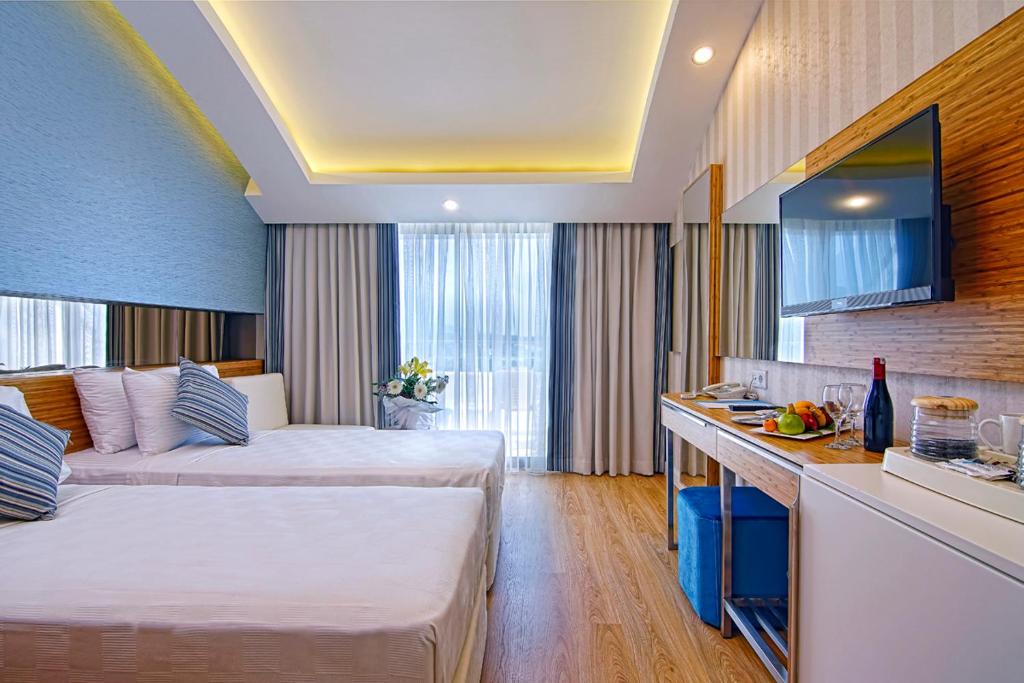 وجود مناظر کوهستانی و دسترسی سریع به ساحل خصوصی هتل، فضایی آرامشبخش و زیبا را برای مسافران فراهم میآورد. ساحل هتل با شنهای طلایی و آبهای زلال مدیترانهای مکانی ایدهآل برای استراحت، شنا و ورزشهای آبی است.