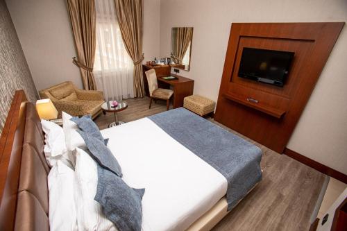 فضای اتاقها بزرگتر از استاندارد هتلهای شهری استانبوله. طراحی داخلی، کلاسیک و کمی قدیمی به نظر میاد (چوبهای تیره، پردههای ضخیم، فرشهای طرحدار)، ولی حس گرم و راحتی داره.
