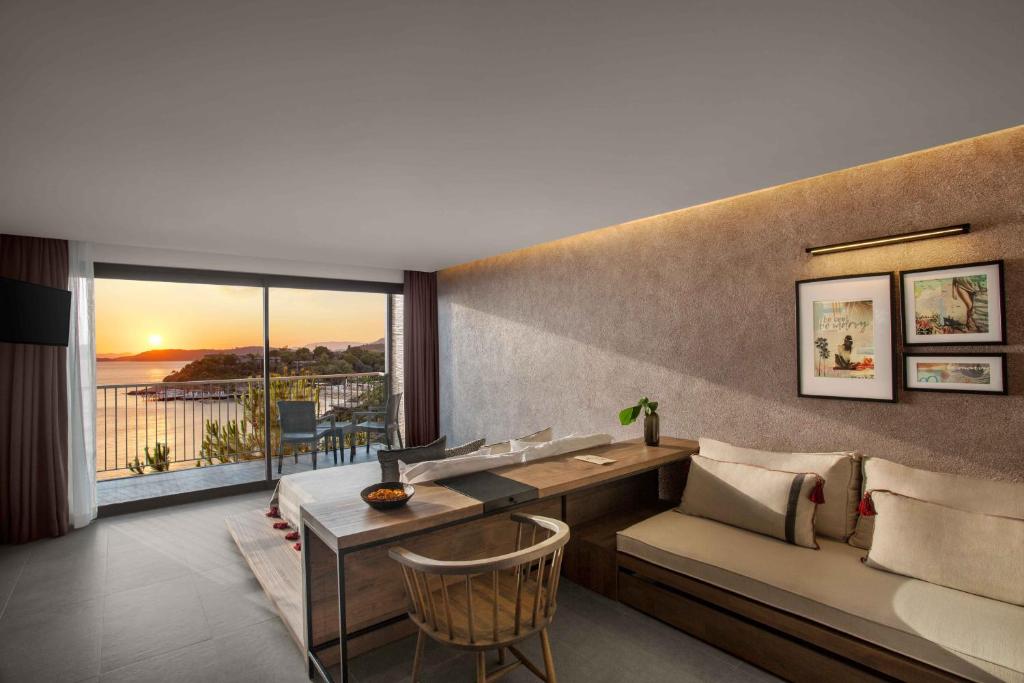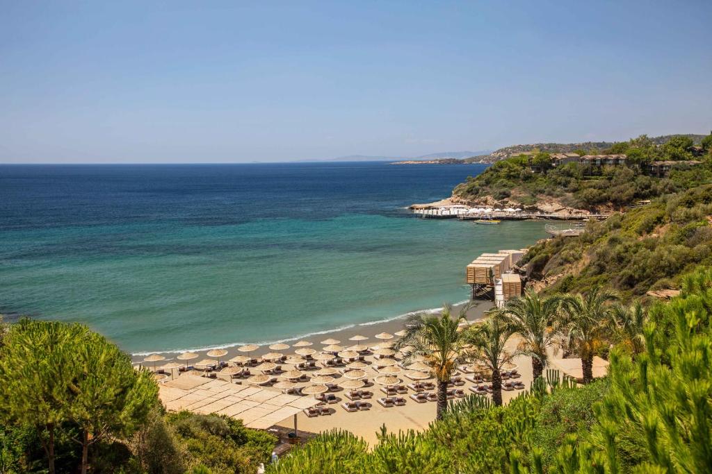 Club Marvy در ازدرهی کوشآداسی واقع شده؛ منطقهای که هنوز از دست دنیای مدرن فرار کرده و چهرهی واقعی طبیعت اژه را حفظ کرده است. این هتل ساحلی در امتداد خلیج خصوصی خود بنا شده، جایی که سنگریزهها زیر پایتان صدای آرامش را زمزمه میکنند و نسیم دریا با برگهای زیتون آواز میخواند.