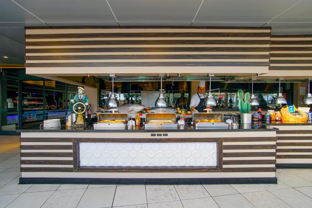 رستوران اصلی: این رستوران بهصورت بوفه باز (Open Buffet) فعالیت میکند و در سه وعدهی صبحانه، ناهار و شام، انواع غذاهای ترکی، مدیترانهای، و بینالمللی را ارائه میدهد.
