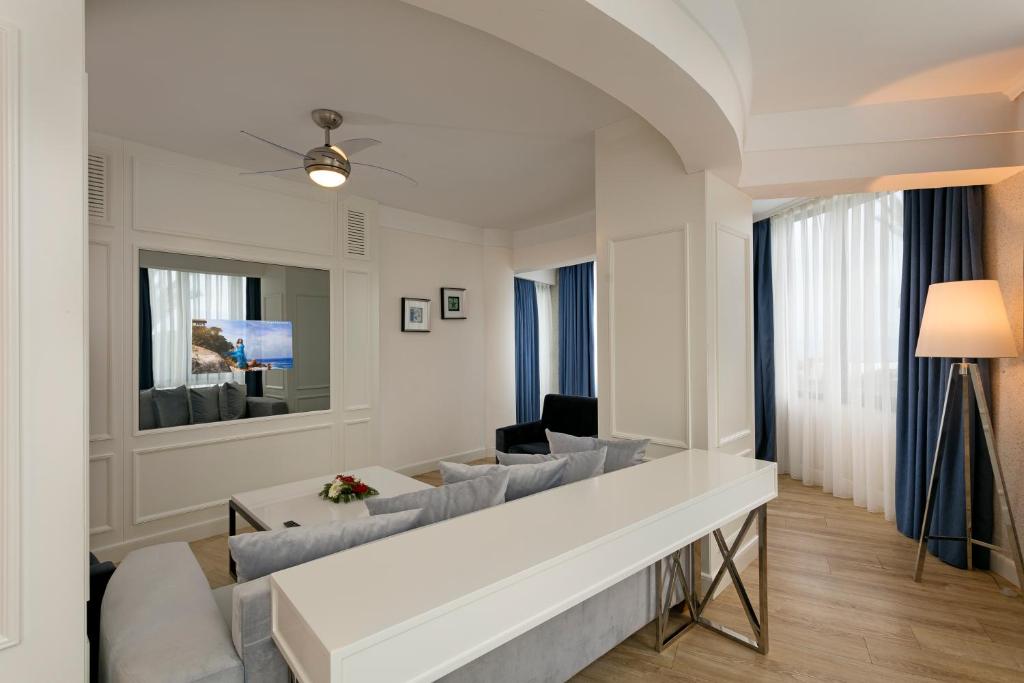 سوئیتهای لوکس: این سوئیتها دارای بالکنهای اختصاصی با منظرهی دریا یا باغ هستند و امکانات بیشتری مانند اتاق نشیمن جداگانه دارند.