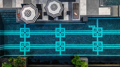یک استخر ۲۰ متری با صندلیهای آفتابگیر، جکوزی و منظرهای بینظیر از آسمانخراشهای بانکوک.