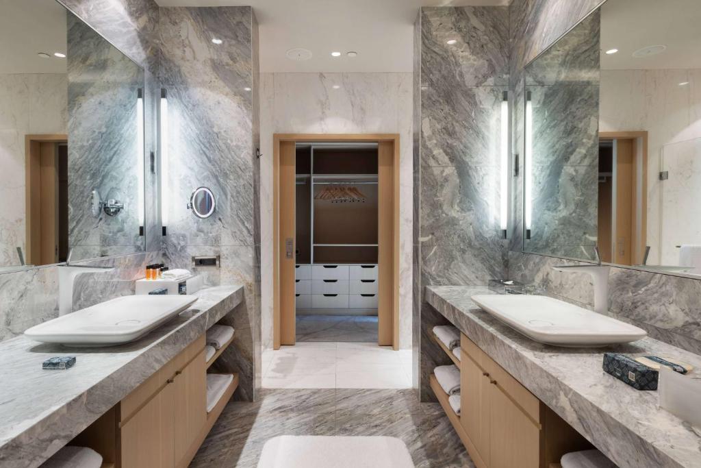 سرویس بهداشتی با سنگ مرمر، آینههای ضد بخار، دوشهای آبپاش بارانی، جکوزی در سوئیتها، و اکسسوریهایی که حس اقامت در یک قصر پنجستاره واقعی را به تو میدهد.