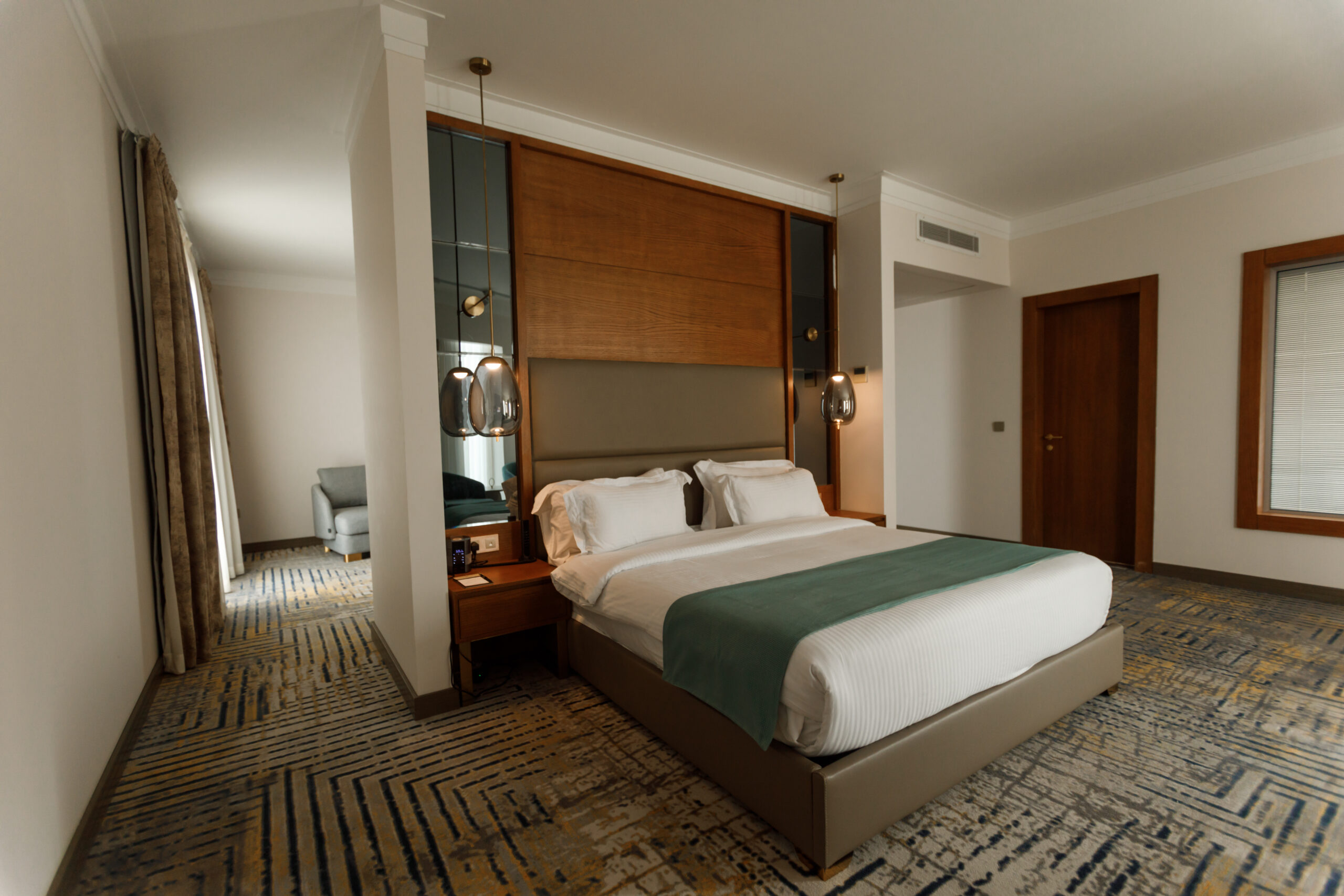اتاقها و سوئیتهای مدرن: هتل پالاس دارای اتاقهای لوکس و مدرن با دکوراسیونی زیبا و طراحی هنرمندانه است. هر اتاق به امکانات رفاهی از جمله تلویزیون هوشمند، اینترنت پرسرعت، مینیبار، صندوق امانات و سرویس بهداشتی مجلل مجهز است.