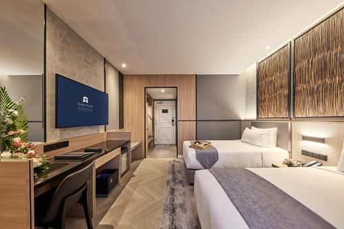 تمام اتاقها مجهز به تهویه مطبوع، تلویزیون صفحهتخت، مینیبار، دستگاه قهوهساز، حمام خصوصی با لوازم بهداشتی رایگان و وایفای رایگان هستند.