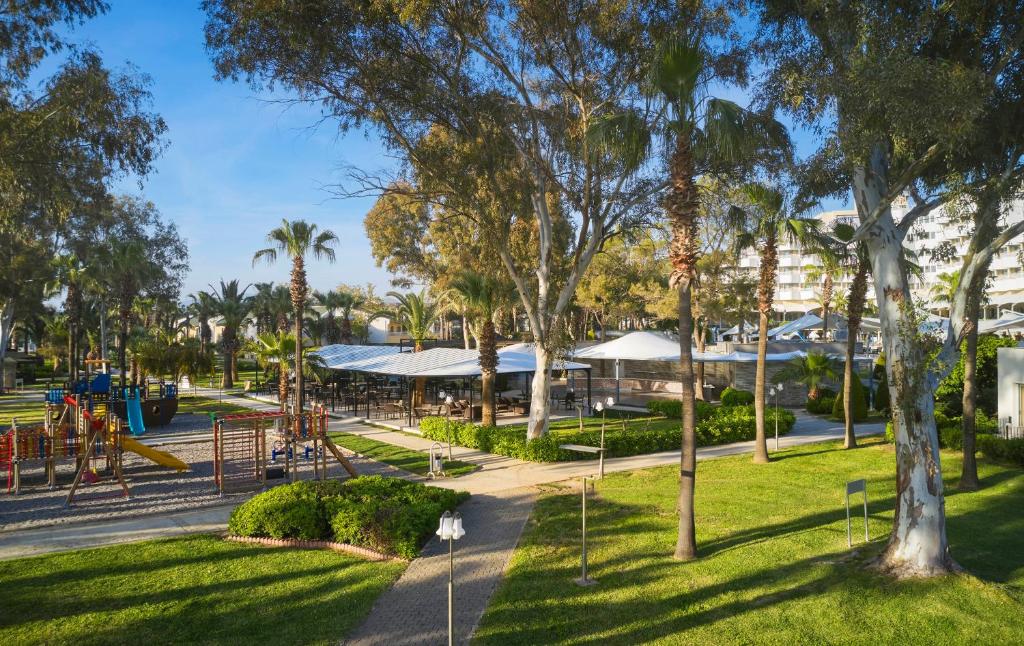 طراحی این هتل ترکیبیه از مینیمالیسم مدیترانهای و عناصر سنتی ترکی. محوطه هتل پر از درختان کاج، نخل و فضای سبز آراستهست که با معماری مدرن اتاقها و رستورانها همخوانی بینظیری داره.
