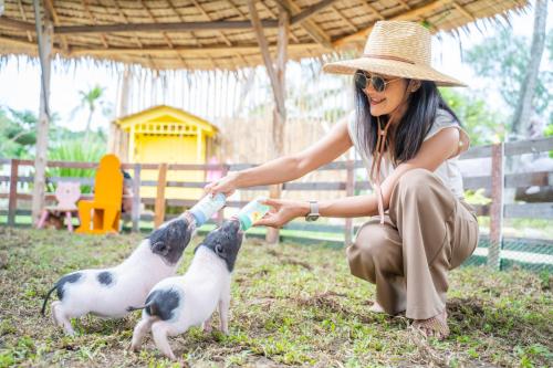 تمام اتاقها بزرگ، نورگیر و با دیدی عالی به باغ، استخر یا دریا طراحی شدن. فضای داخلی ترکیبی از طراحی مدرن با المانهای سنتی تایلندیه؛ مبلمان چوبی، پردههای سبک، کفپوشهای بامبو و رنگبندی گرم.