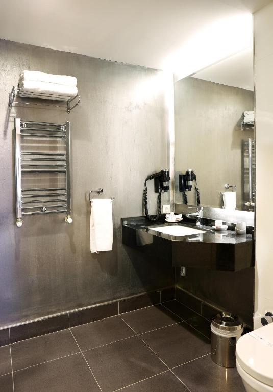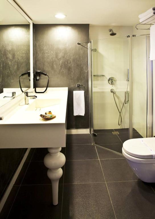حمام با دوش، سشوار، لوازم بهداشتی، حوله و دمپایی