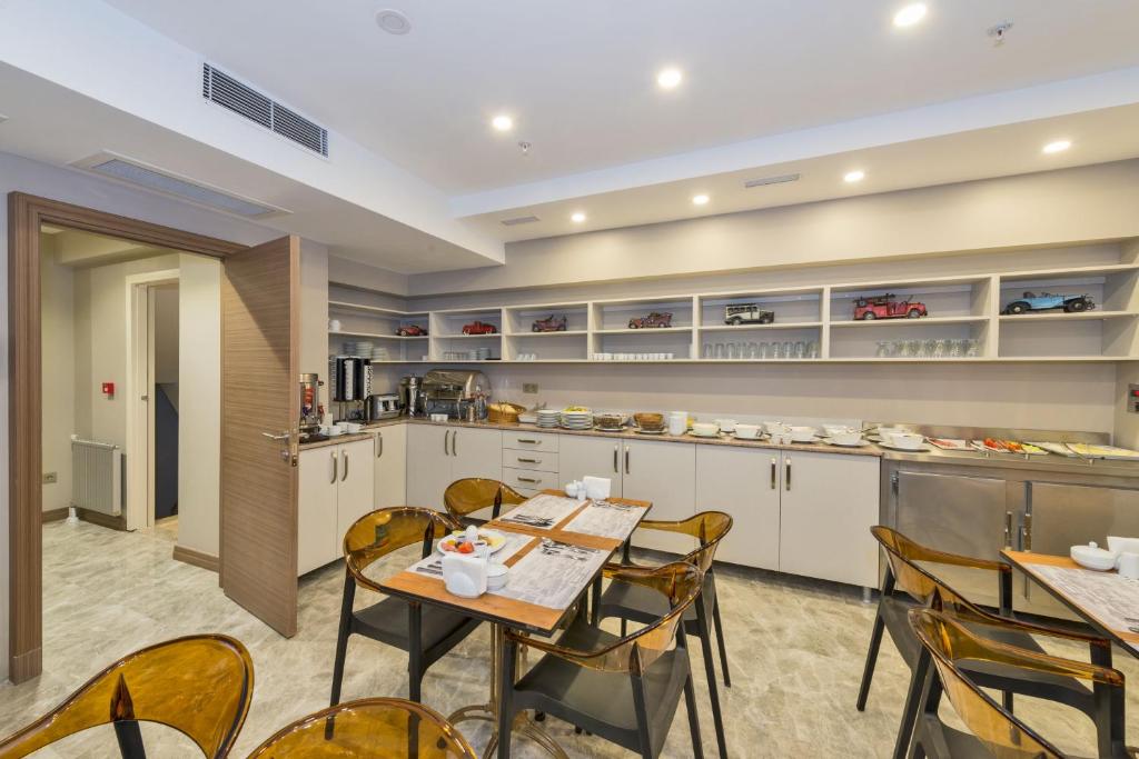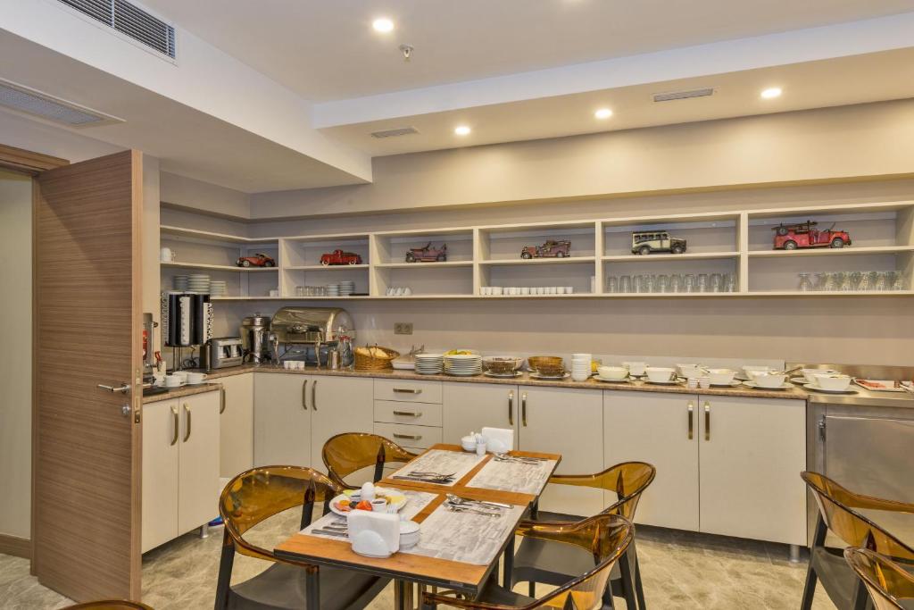 صبحانه در این هتل هر روز صبح بهصورت بوفه باز ترکی-بینالمللی در سالن غذاخوری طبقهی همکف سرو میشود.
