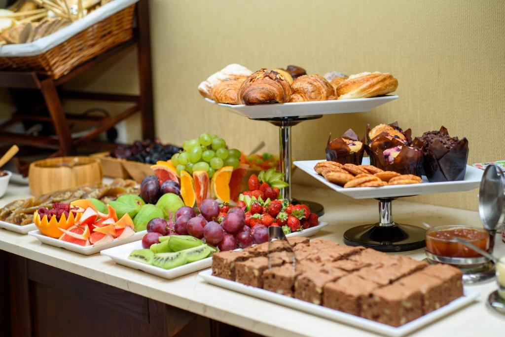 صبحانه بوفه: شامل غذاهای گرم و سرد، شیرینیهای محلی و نوشیدنیهای تازه.