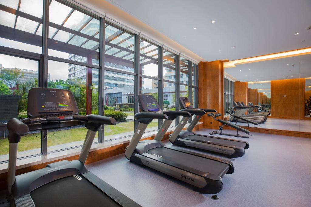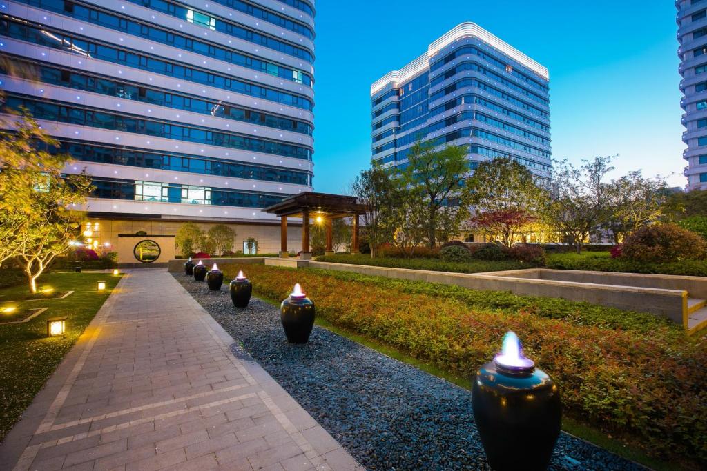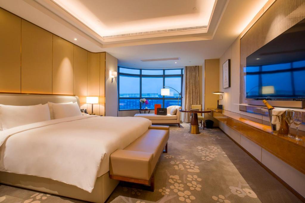 پنجرههای سرتاسری اتاقها، چشماندازی زیبا از خیابانهای سبز و پرنور هانگژو ارائه میدهند. در برخی اتاقها میتوان منظرهی دریاچه یا ساختمانهای تاریخی اطراف را دید. هر اتاق مجهز به تلویزیون صفحه تخت، میز کار، چایساز، مینیبار، گاوصندوق و سیستم تهویه مطبوع پیشرفته است.