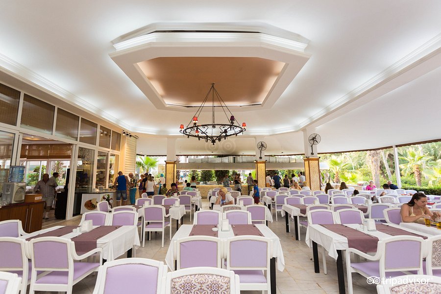 رستوران اصلی: بهصورت بوفه باز، انواع غذاهای ترکی، مدیترانهای و بینالمللی سرو میشود. صبحانه شامل پنیرهای محلی، نان تازه، میوههای فصلی و شیرینیهای سنتی است.