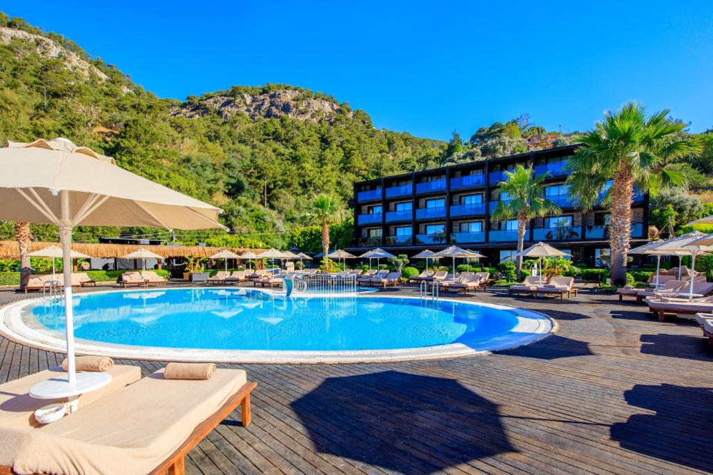 بدون شک یکی از بخشهای محبوب هتل، استخر روباز بزرگ آن است. این استخر در موقعیتی قرار دارد که چشمانداز مستقیم به کوههای اطراف و دریای اولودنیز دارد. تصور کنید روی یک تخت آفتابگیری دراز کشیدهاید، نوشیدنی خنک در دست دارید و مقابلتان منظرهای بیپایان از آبی دریا و سبزی کوهها گسترده شده است؛ تجربهای که به سختی فراموش میشود.