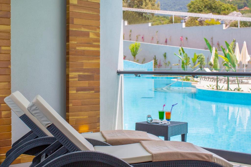 سوئیتهای لوکس با ویوی دریا: این اتاقها تراس اختصاصی با منظره مستقیم دریا دارند و برخی دارای جکوزی خصوصی هستند.