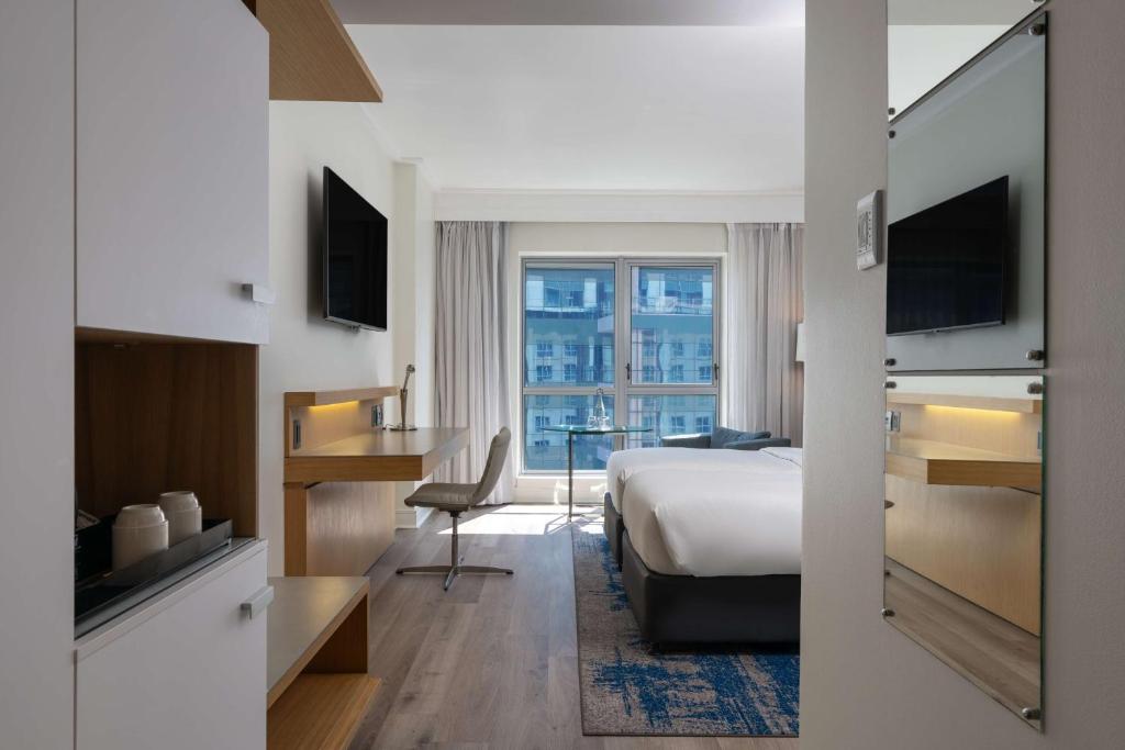اتاقهای Radisson Blu Johannesburg با تمرکز بر راحتی، سکوت و کارایی طراحی شدهاند. طراحی داخلی اتاقها مدرن، مینیمال و بسیار منظم است. رنگهای آرام، نور طبیعی مناسب و پنجرههای بزرگ باعث میشوند فضا دلباز و آرامشبخش باشد.