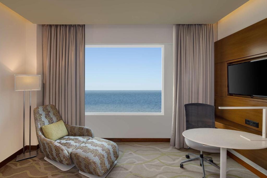 اتاقهای هتل با دکوراسیون مدرن و رنگهای روشن طراحی شدهاند تا حس آرامش و راحتی ایجاد کنند. بیشتر اتاقها چشماندازی رو به دریا یا شهر دارند. امکانات استاندارد هر اتاق شامل: