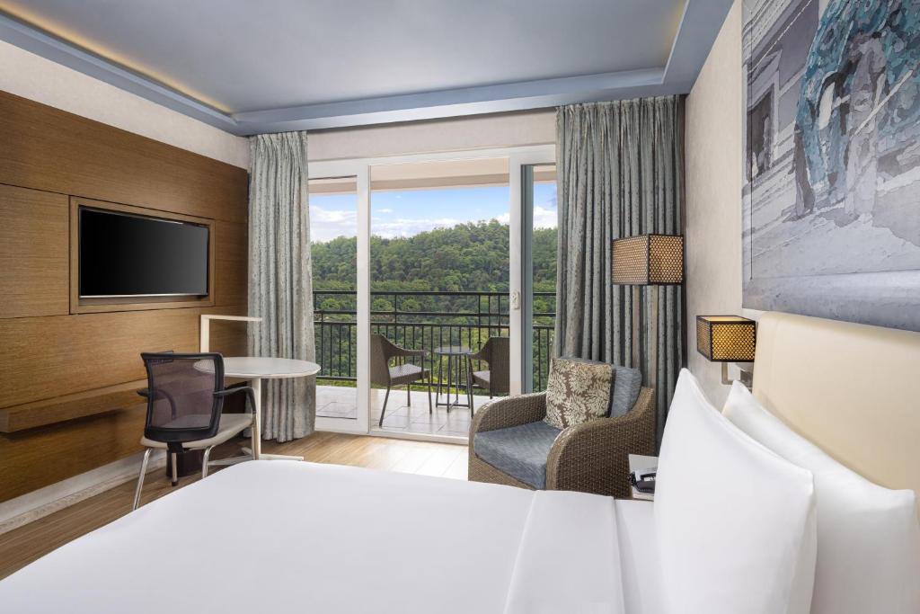 Radisson Kandy با فضایی مدرن و مینیمال طراحی شده است. اتاقها روشن، مجهز و بهگونهای چیدمان شدهاند که حس دنج بودن و آرامش را منتقل کنند. بالکن خصوصی در بسیاری از اتاقها وجود دارد و این امکان را میدهد که مهمانان صبحها با نسیم خنک و منظرهای سبز روزشان را آغاز کنند.