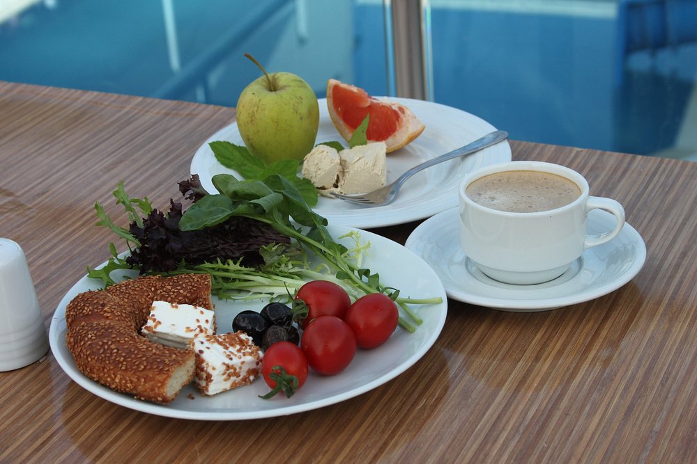 صبحانه: شامل نانهای تازه، عسل محلی، پنیرهای ترکی، زیتون، سبزیجات، تخممرغ و نوشیدنیهای متنوع.