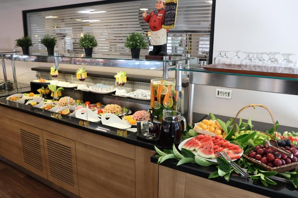 برای ناهار و شام، رستوران منویی از غذاهای ترکی و بینالمللی ارائه میدهد. کیفیت غذا مناسب است، هرچند بسیاری از مهمانان ترجیح میدهند برای تجربههای متنوعتر به رستورانها و کافههای اطراف تقسیم بروند.