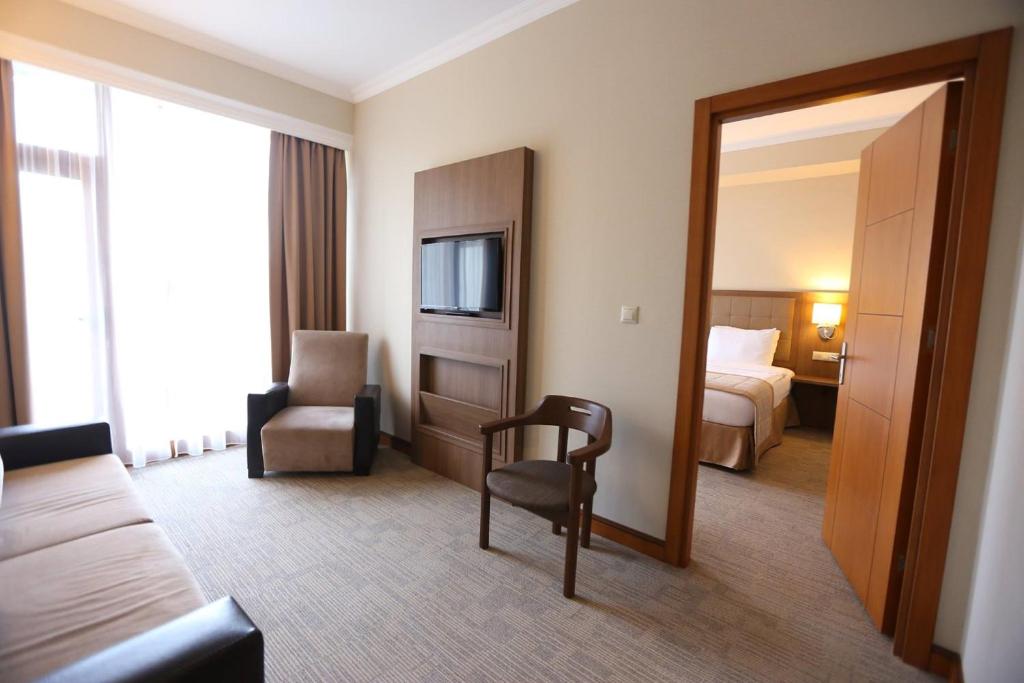 هتل دارای ۱۵۲ اتاق و سوئیت است که هرکدام با طراحی مدرن، رنگهای ملایم و امکانات کامل تجهیز شدهاند. یکی از ویژگیهای خاص اتاقها در Sputnik Hotel Batumi، چشمانداز فوقالعاده آنهاست. برخی از اتاقها رو به دریا و خط افق باتومی باز میشوند و برخی دیگر رو به کوهها و جنگلهای اطراف.