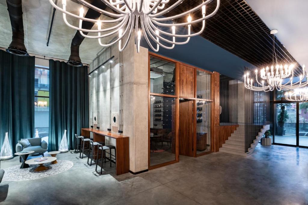 داخل هتل، طراحی بر پایه ترکیبی از مینیمالیسم و گرما شکل گرفته است. استفاده از رنگهای ملایم مانند بژ، خاکستری و سفید در کنار نورپردازی هوشمند باعث شده فضای داخلی حس آرامش و راحتی را به مهمان منتقل کند. مبلمان مدرن، کفپوشهای باکیفیت و جزئیات دکوراسیونی الهامگرفته از فرهنگ محلی گرجستان، هویتی خاص به هتل بخشیده است.