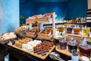 هتل دارای یک رستوران داخلی است که منویی متنوع از غذاهای سنتی گرجی و غذاهای بینالمللی ارائه میدهد. صبحانه هتل بهصورت بوفه سرو میشود و شامل انواع پنیرهای محلی، نانهای تازه، میوه، قهوه و غذاهای گرم است.