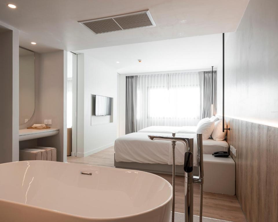 اتاقها نیز ادامهی همین فلسفهی طراحی هستند. دیوارهای سفید با قابهای چوبی و کفهای روشن، محیطی را میسازند که در آن حتی صدای شهر هم رنگ آرامش میگیرد. بسیاری از اتاقها چشمانداز خیرهکنندهای به خلیج پاتایا یا استخر مرکزی دارند. بالکنها با میز و صندلیهای بامبو، جایی ایدهآل برای نوشیدن قهوهی صبحگاهی یا تماشای غروب خورشیدند.
