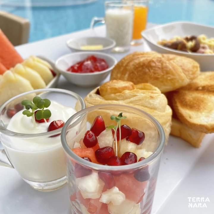 رستوران اصلی هتل، Amara Dining Room، از آن فضاهایی است که هر وعدهی غذایی را به یک تجربهی کامل بدل میکند. صبحانهی بوفهای آن بهخودیخود میتواند یکی از بهترین دلایل اقامت در Terra Nara باشد؛ از انواع نانهای تازه و میوههای استوایی گرفته تا غذاهای محلی مانند «پد تای» و «سوپ تام یام».