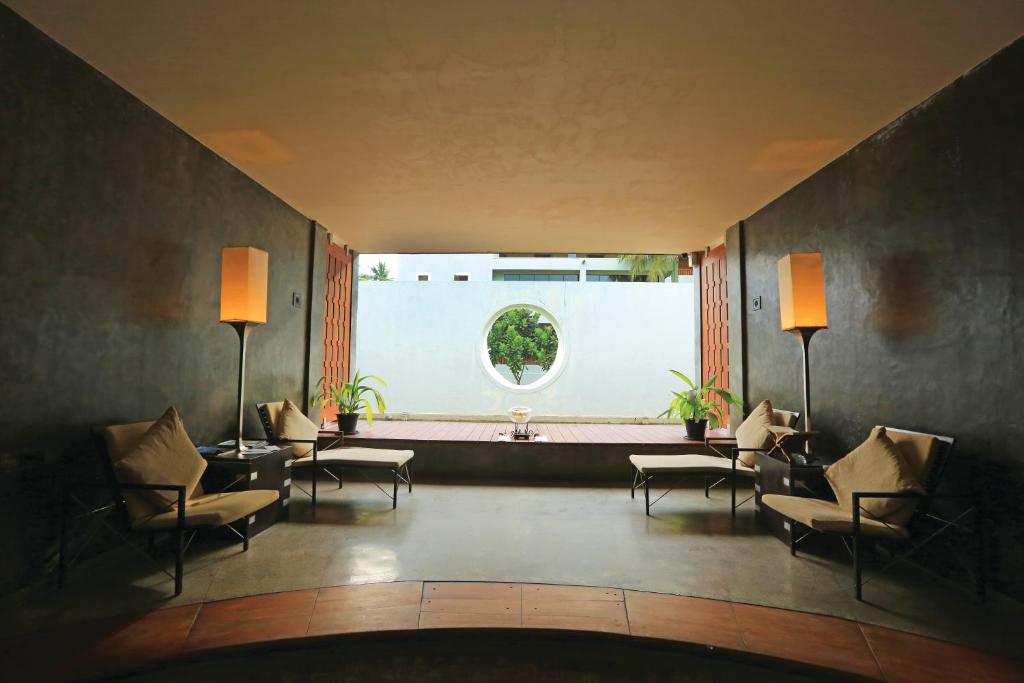 یکی از شاخصترین ویژگیهای هتل، طراحی آن است. این بنا حاصل کار جفری باوا، معمار افسانهای سریلانکاست. او با تلفیق خطوط مینیمال، فضاهای باز و استفاده از مصالح بومی، ساختمانی خلق کرده که گویی میان زمین و دریا معلق است. وقتی وارد لابی میشوی، نگاهت از میان ستونهای عظیم و باغهای نارگیل عبور میکند و بیدرنگ به خط افق اقیانوس میرسد.