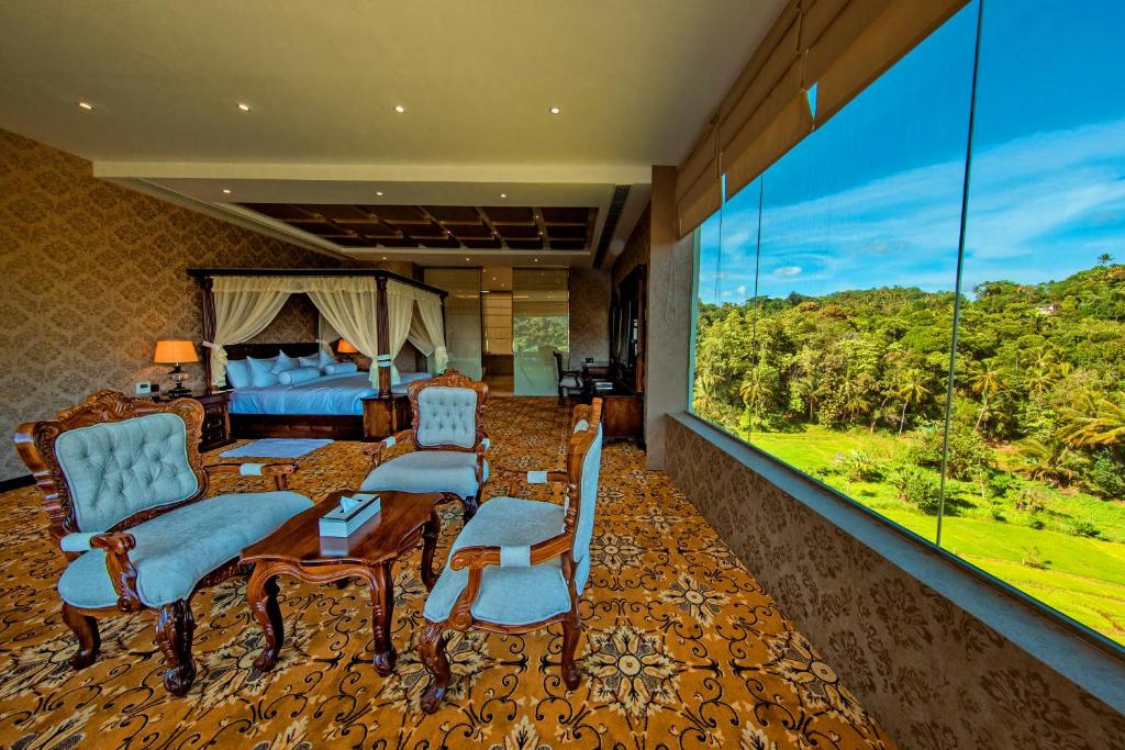 هتل The Golden Crown دارای ۹۰ اتاق لوکس است که به سبک مدرن و با الهام از عناصر سنتی سریلانکایی طراحی شدهاند. تمامی اتاقها دارای چشمانداز خیرهکننده از طبیعت، کوهستان یا شهر کندی هستند.