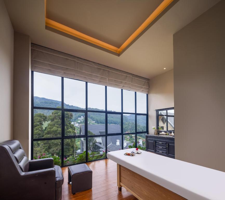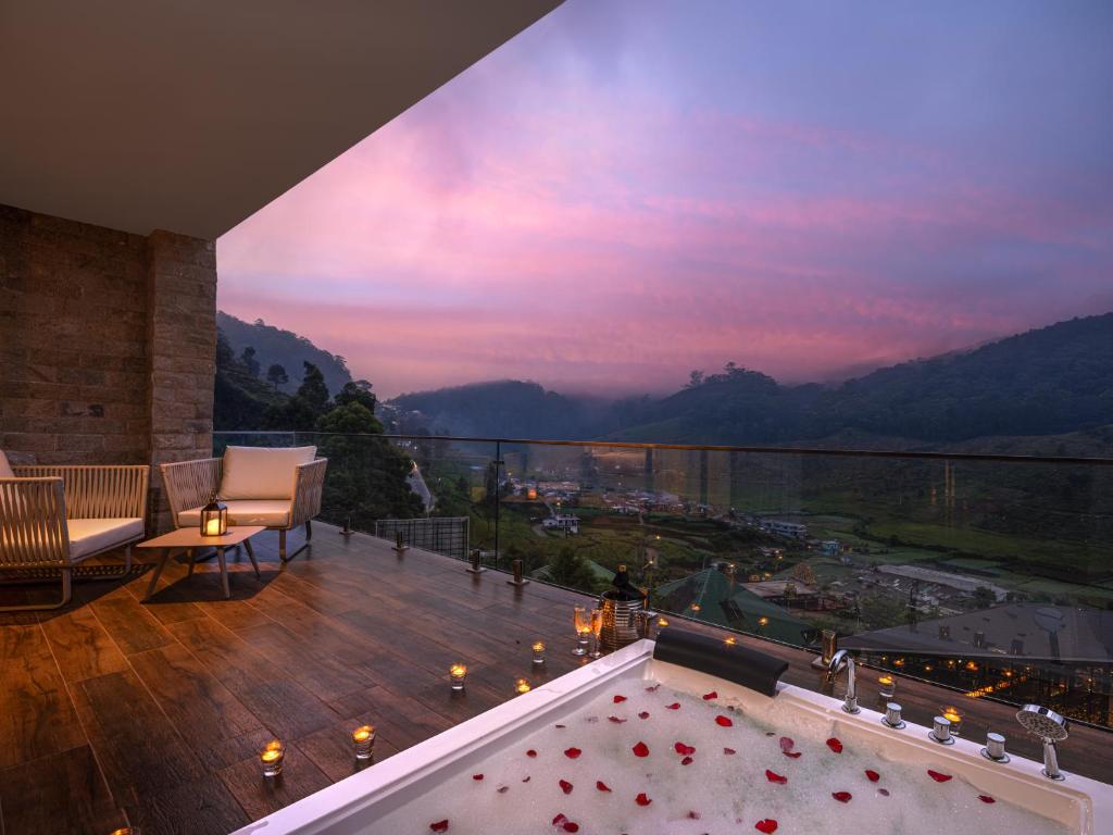 The Golden Ridge Hotel در یکی از بهترین نقاط کندی واقع شده است؛ جایی که کوههای سبز، درختان بلند و چشمانداز بیانتها از مزارع چای، فضایی شاعرانه و آرامشبخش پدید آوردهاند.
