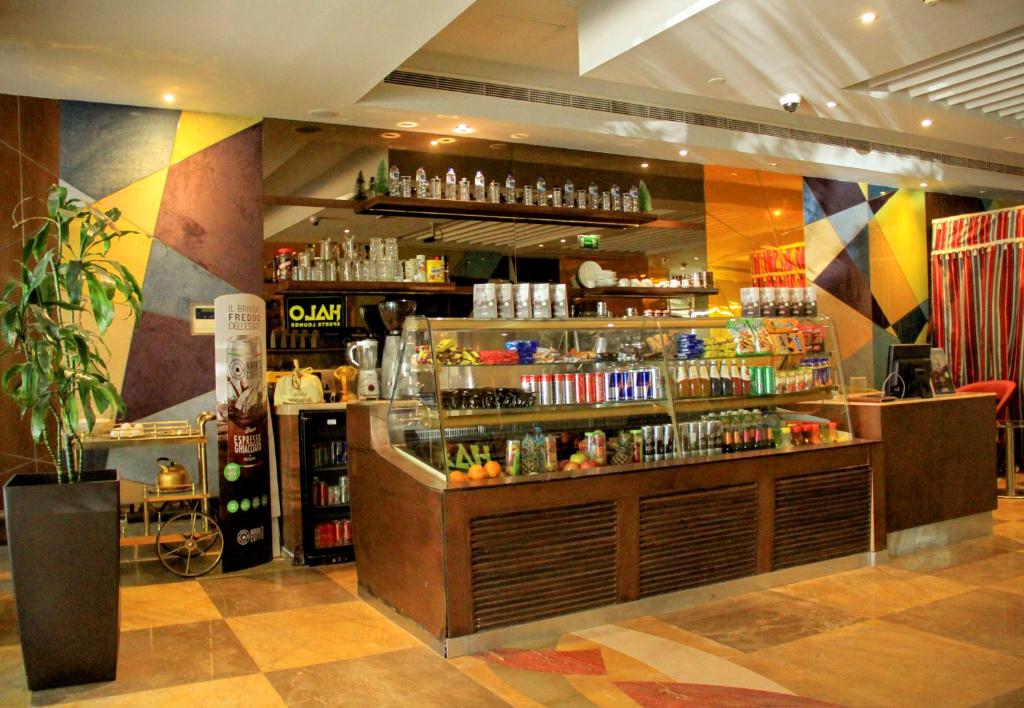 کافه و بار مدرن در لابی که برای نوشیدنی، قهوه، میانوعده یا جلسات کاری بسیار مناسب است.
